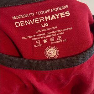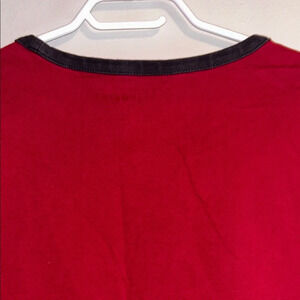 Vibrant red tee with dark edging. Ideal for everyday wear.