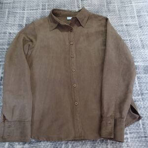 Denver Hayes Smooth Faux-Suede Button Down Shirt Brown Women’s Size M