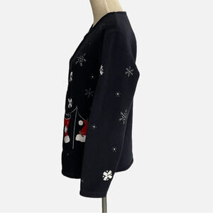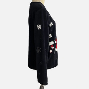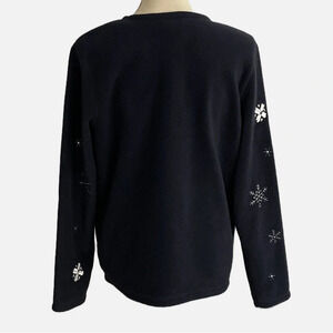 Denver Hayes Women’s Christmas Fleece Sweater Size XL Embroidered Beaded Blue