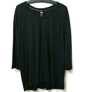 Denver Hayes Women's Top V Neck Sz 2 XL black, 3/4 sleeves, nice modern style, in good condition