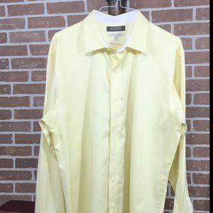 Yellow dress shirt is permanent press. Like new. Slim fit.