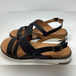 Comfortable and versatile sandal with low wedge heel and buckled back sling strap. They have some wear on back heels (pic 3) but are in good shape,