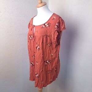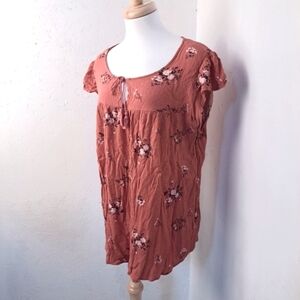 Denver Hayes | pink floral cute t shirt with front key hole tie up.