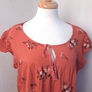 Denver Hayes | pink floral cute t shirt with front key hole tie up