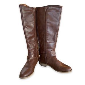Denver Hayse women’s long brown 1” heel ankle buckle boots size 7