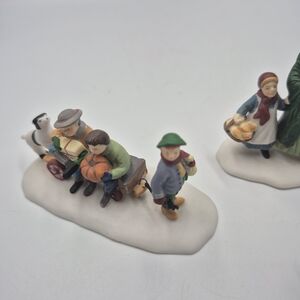 Delightful ceramic figurines featuring people in winter attire. Perfect for holiday decor.