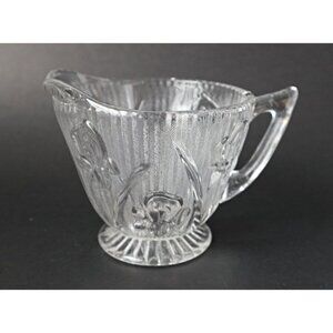 For your consideration is a vintage Depression Glass is a cream and sugar with lid in the Iris and Herringbone pattern, produced by the Jeanette Glass Company, 1930's.