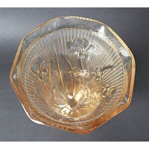 For your consideration is a vintage Depression Glass vase with the Iris and Herringbone pattern and iridescent colour, produced by the Jeanette Glass Company, 1930's.