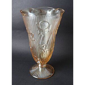 Depression Glass Iris And Herringbone Vase Iridescent Jeanette 1930s