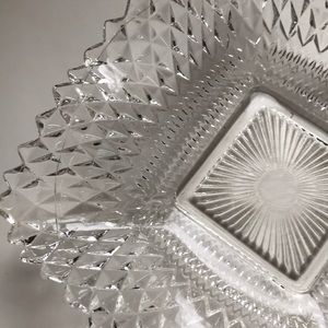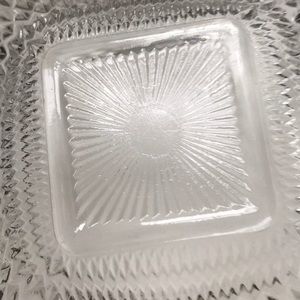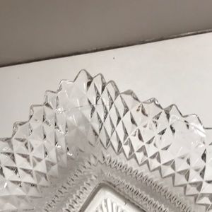 In excellent used condition. Clear glass square ruffled edge cubist design. No chips cracks or scratches.