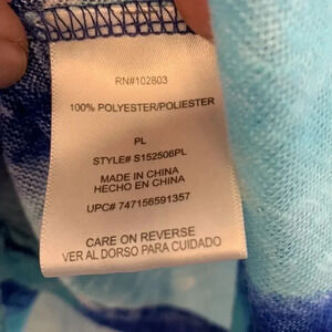 Lightweight with cap sleeves, deep v neck. Fabric has stretch. Colors are blue and aqua. In immaculate condition.