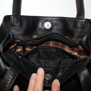 Plaid fabric lining, zip side pocket and center zip pocket inside