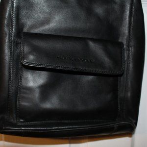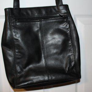 Leather shoulder bag with front flap pockets with card slots and 2 pouches
