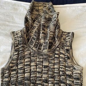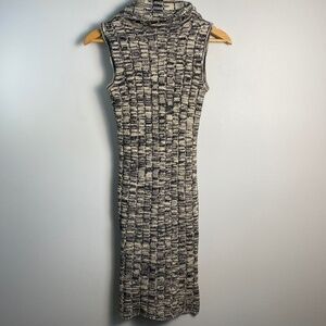 Derek Heart Black/Tan Sleeveless Cowl Neck Ribbed Sweater Pencil Dress Small