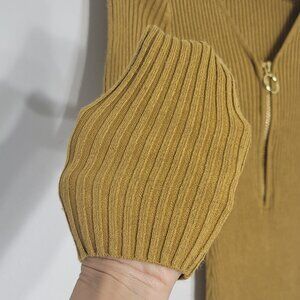 Derek Heart Women's Green Yellow V-Neck Zipper Front Casual Ribbed Knitted Midi Dress