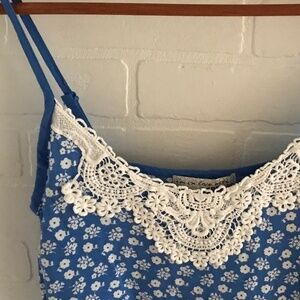 Derek Heart Tank top Blue White Floral Crochet Greek Boho Dainty Coquette M