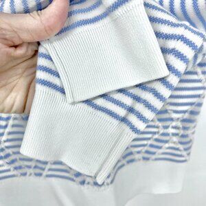 Derek Lam 10 Crosby Blue White Stripe Geometric Diagonal Fringe Crewneck Pullover Sweater Sz S