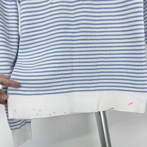 Derek Lam 10 Crosby Blue White Stripe Diagonal Fringe Crewneck Sweater Sz S