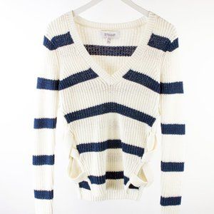 Derek Lam 10 Crosby Creme Striped Lace-Up Sweater