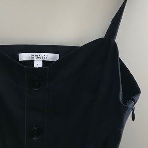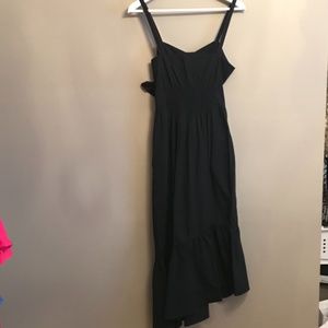Derek Lam 10 Crosby ruffled hem dress - Size 2 - navy. Breezy asymmetrical crisp cotton dress with self-tie waist and ruffled hem. Hourglass, sleeveless, sweetheart neckline, side pockets, side zipper. 100% cotton. Self-tie at waist in front or back.