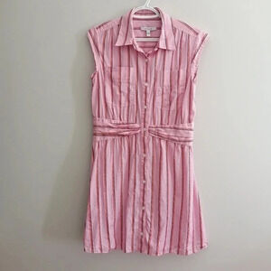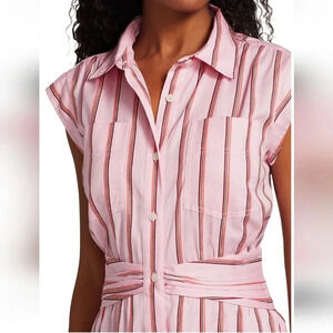 Derek Lam 10 Crosby Pink Striped Fit and Flare Shirt Dress Gathered Waist 6
