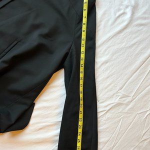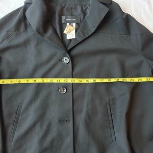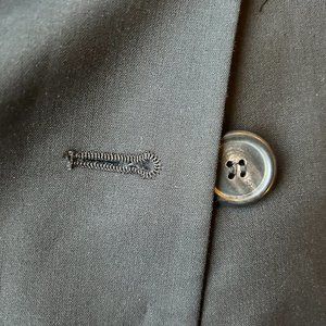 Label says size 4 but fits more like an 8. Beautiful made sample--fabric composition is in Italian but it's a lovely smooth lightweight wool blend, with rayon bemberg lining. Quality details include keyhole buttonholes, front welt pockets, beautifully shaped shoulders and double vents in the back. Too big for me, unfortunately (I am 5' 4" with a 34" bust). The sleeves are nice and long for those of you with longer arms.