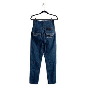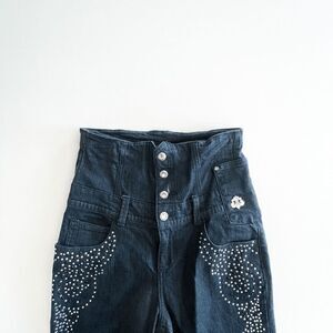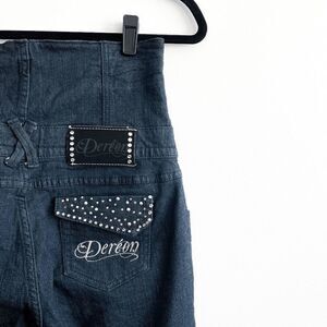 Dereon Women Denim Jeans Ultra High Waisted Corset Rhinestones Blue Sz 7/8