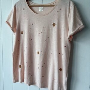 Elevate your casual style with this blush tee adorned with delicate star embellishments. Perfect for everyday wear.