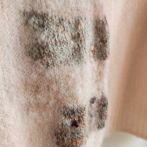 From Parisian brand Des Petits Hauts, this mohair and merino wool knit has an irresistible plush, airy feel. The petal-pink hue and subtle earth-toned sleeve motifs threaded with a hint of copper create a chic, romantic look that pairs effortlessly with denim.
