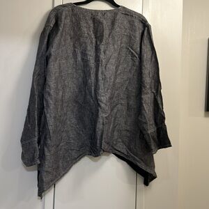 Stylish asymmetrical button-up top in gray. Features a unique design with a comfortable fit. New