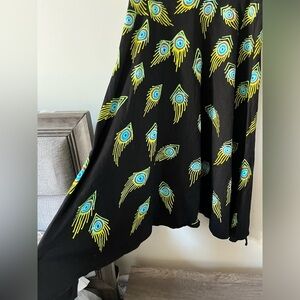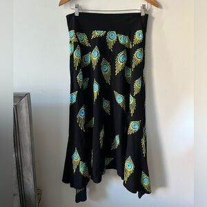 Design By Naomi Peacock Feather Print Black Skirt Large