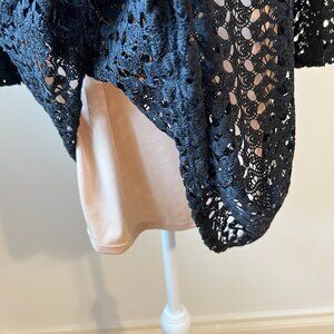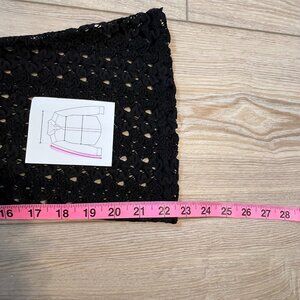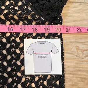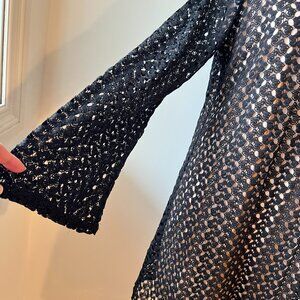 Design Lab Black Boho Retro Crochet Mini Dress with Bell Sleeves (L)