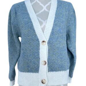Design Lab Blue and White Knit Button Up Cardigan Sweater M