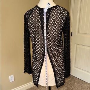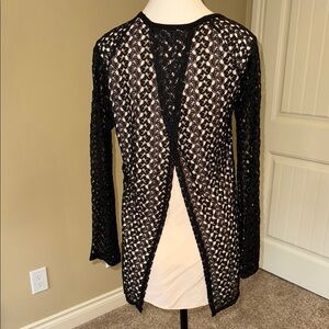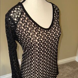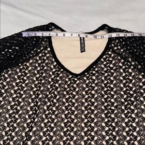 Design Lab Lord & Taylor Black Lace Blouse with Gold Lining