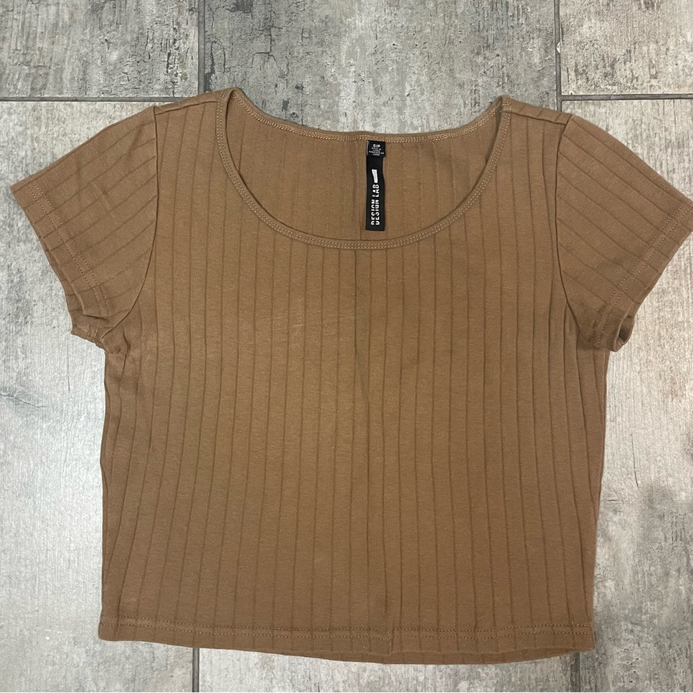 Design Lab Lord & Taylor Tan Ribbed Crop Top