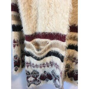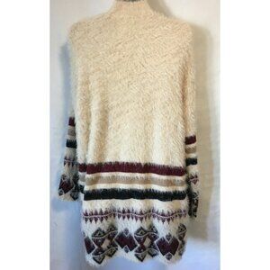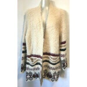 Design Lab Lord & Taylor Women Cardigan Open Fluffy Long Size M Off White