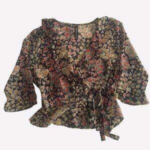 Design Lab Lord and Taylor Floral 3/4 bell sleeve Cropped Top