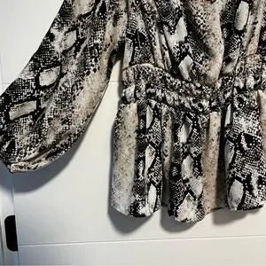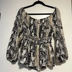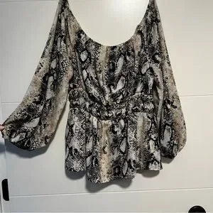 Beautiful Design Lab Lord & Taylor brand shirt. Flowy, snake print and off the shoulder. Boho style and flattering seams. In great preowned condition, see photos