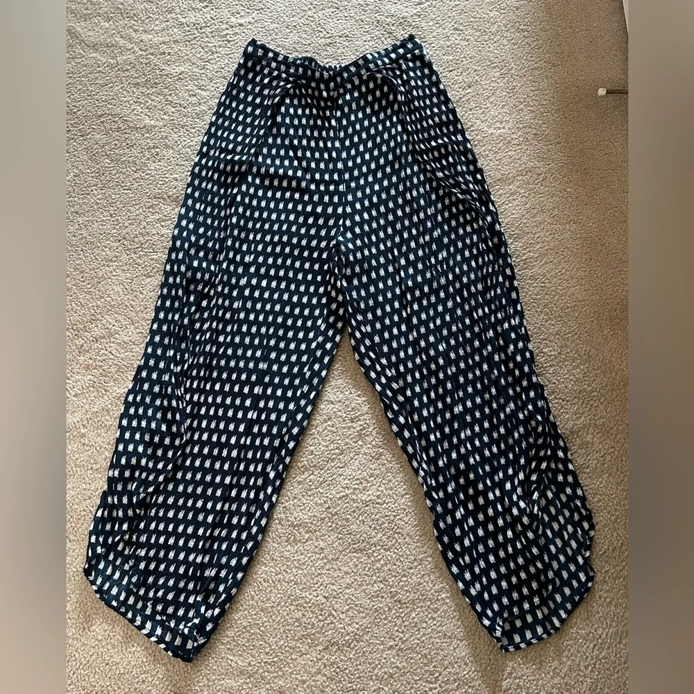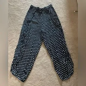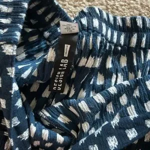 Design Lab Pants - navy/white pants - pull-on style - peek-a-boo front slits on the bottoms - ankle length - elastic waistband - lightweight - 14” inches waist - 19” inches hips - 26” inches inseam - excellent preloved condition