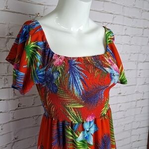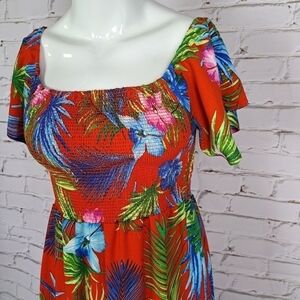 Short sleeves sundress long with tropical print