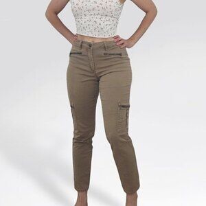 Design Lab Womens Mid Rise Sand Khaki Slim Straight Cargo Utility Pants- 31