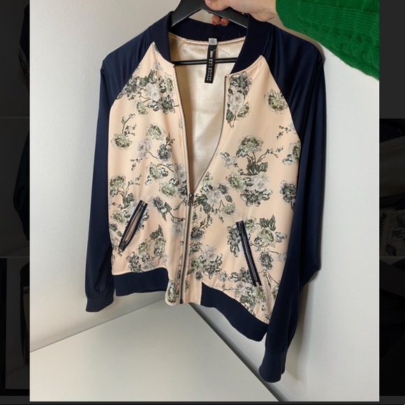 100% Polyester pink and navy jacket with flower design by Design Lab