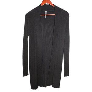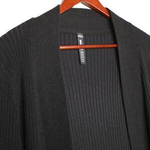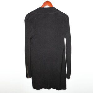 Design Labs Lord & Taylor Knit Long Duster Cardigan Sweater Black Zipper Sleeve