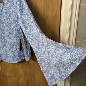 Blue and white blouse, flare sleeves. Cool thin material.