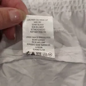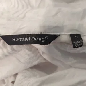 This is a statement piece blouse. It buttons behind a lapel type front that folds back away from the buttons all the way down the front. Embroidery all over in circles/swirls. A jacket style seam across the lower back. Quality Cotton fabric gives this garment the ability to hold its shape. Excellent worn condition. I found one small pale yellow spot that is completely behind the 'lapel' and would not be seen. I have owned this long enough that its almost Vintage.