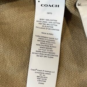 Coach Signature Zip-up sweater unisex and nice baggy fit. It is a heavy jacket and very comfortable. The hood is big and nice and snug. I wore it a handful of times it is basically brand new.