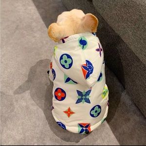 Trendy designer dog jacket made with high-quality materials. Keep your pup warm and stylish at the same time! This jacket features an all over pattern with water resistant material and adjustable straps. No offers please.