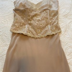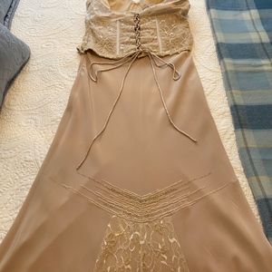 DesignerMontage Evening Gown / Mother of the Bride Dress. Worn once. Strapless beaded top with boned insets. Beautiful light beige colour. Beading on the bottom back and beaded jacket. Fits on the small side.