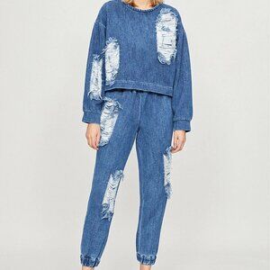 Designer Fall/Winter 2018 Ready-To-Wear Collection Distressed Denim Sweater