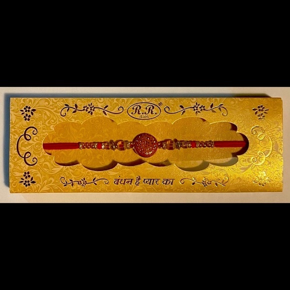 On this Raksha Bandhan, Bless your brother with love in the form of this beautiful hand crafted gold-toned ,studded, classic designer Rakhi.